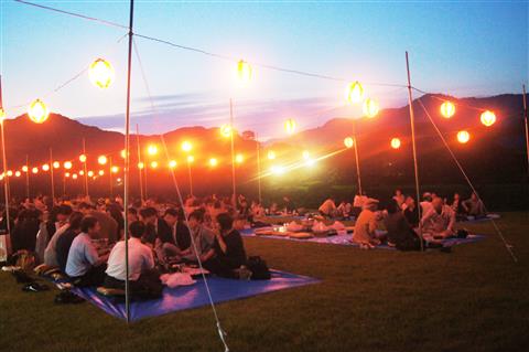園内中央芝生広場の特設会場にて、月を見ながら風味豊かな「いもたき料理」に舌鼓を打ち、秋の一夜を楽しもう。園内は竹灯篭で幻想的に彩られ、ジャズや津軽三味線の催しも開催される。