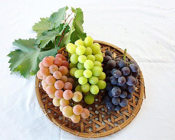 その土地に合う品種を厳選し、減農薬で育てている「四季彩農園」では、8月からブドウが食べ頃に。