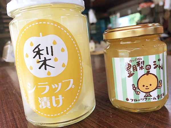ナシをシロップ漬けにした「梨のシラップ漬け(780円)」や、「梨ジャム(480円)」も販売されているので立ち寄ってみてくださいね。