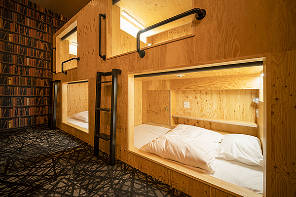 こちらには宿泊ができるカプセルベットが30床完備されています!