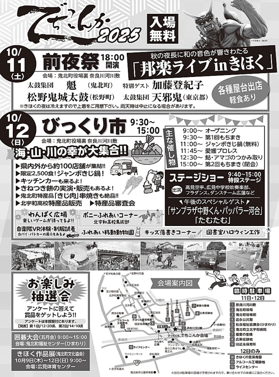 今年は鬼北町合併20周年記念事業ということもあり、よりスケールアップして10月11日(土)・12日(日)に開催。