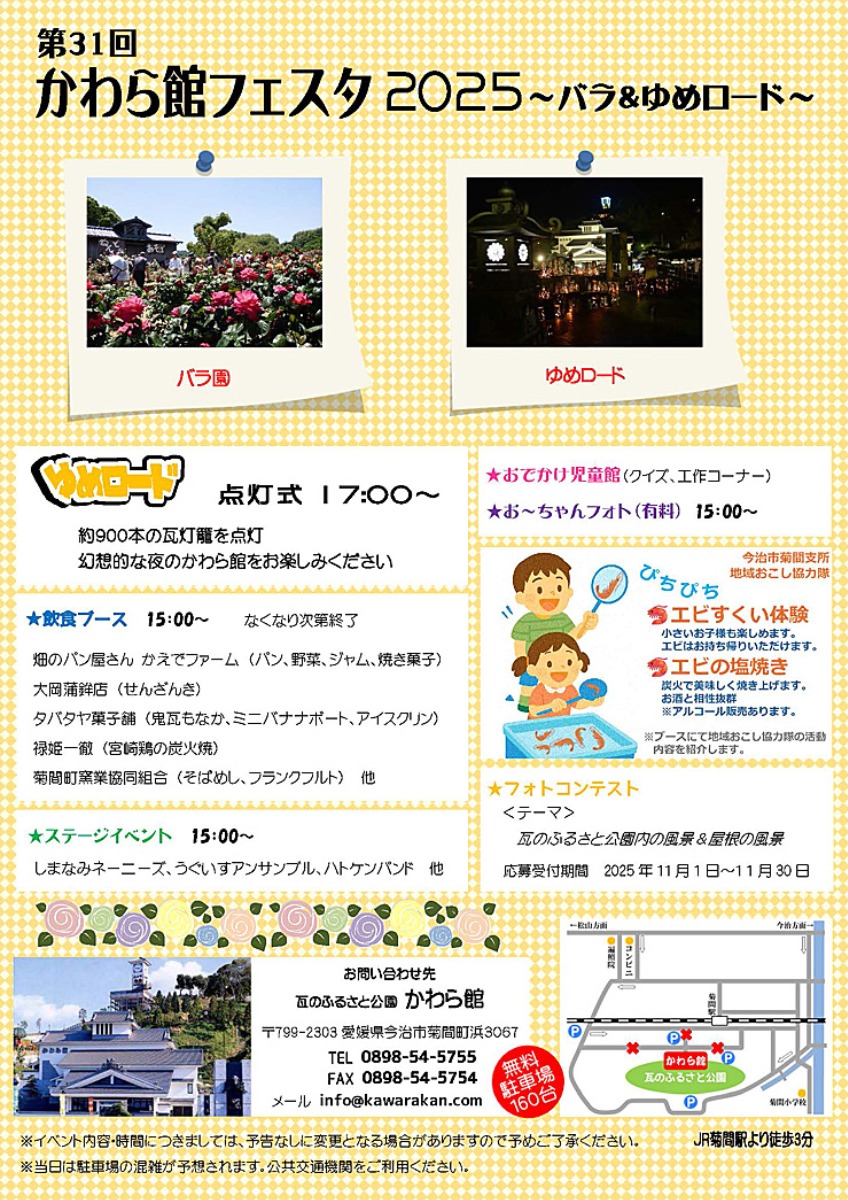 かわら館で大人気のイベント「第31回 かわら館フェスタ2024 ~バラ&ゆめロード~」が、今年は10月25日(土)に開催!