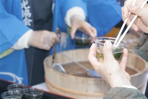 しらうおのおどり食いをはじめ各種郷土料理の販売、特産品の即売、魚の浜値市、もちまきや体験しらうお漁など各種アトラクションが催される。