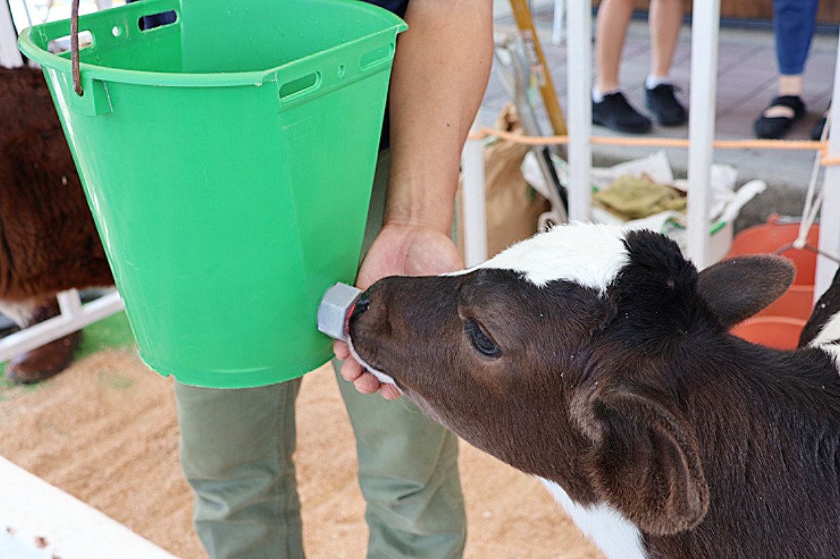 東宇和酪農青年部会による「子牛とのふれあいコーナー」では、本物の子牛と触れ合いながら命や食の大切さを実感できる貴重な体験も。