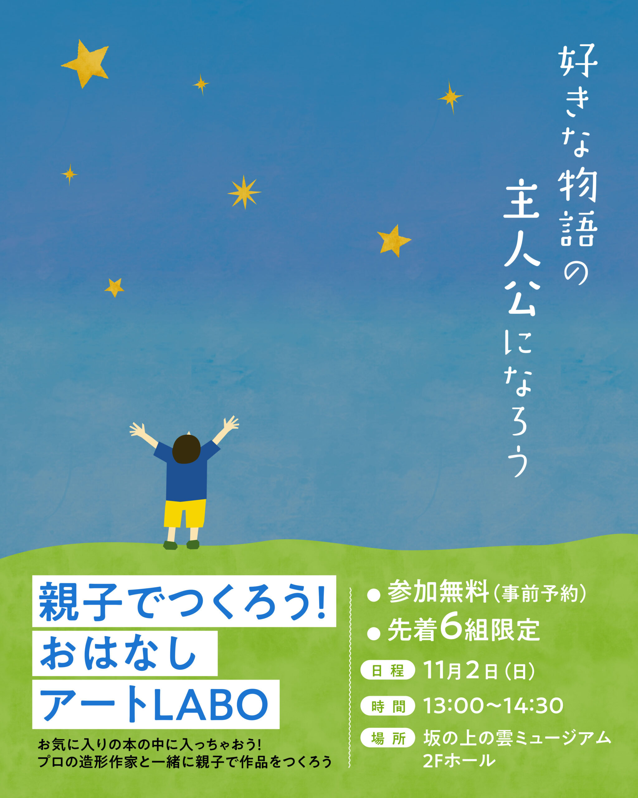 坂の上の雲ミュージアムで開催される親子向けアートイベントのひとつ、ワークショップC「親子でつくろう!おはなしアートLABO」。