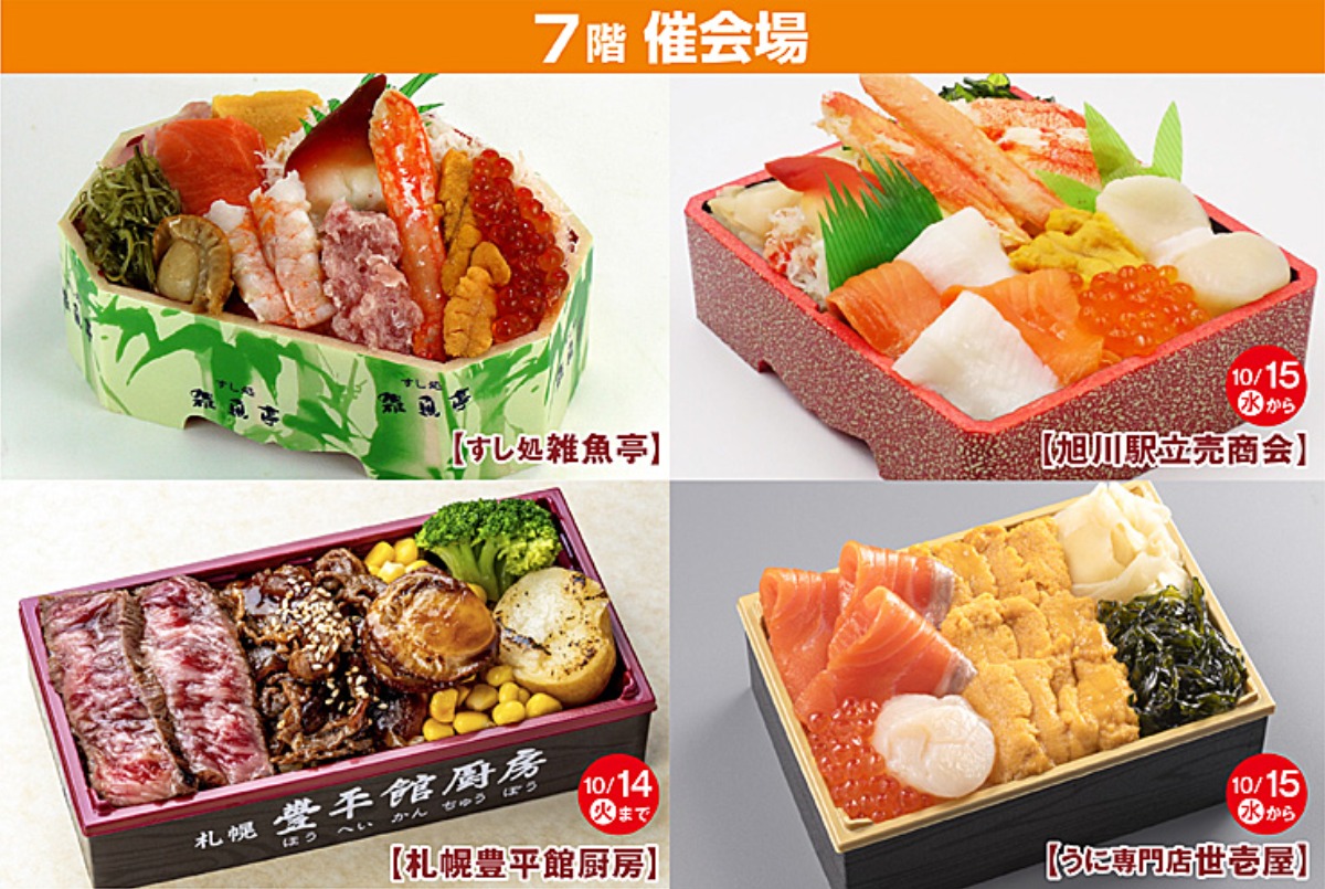 毎年大好評のお弁当やお惣菜コーナーには、北海道の新鮮な魚介やジューシーなお肉を使った品がずらり。