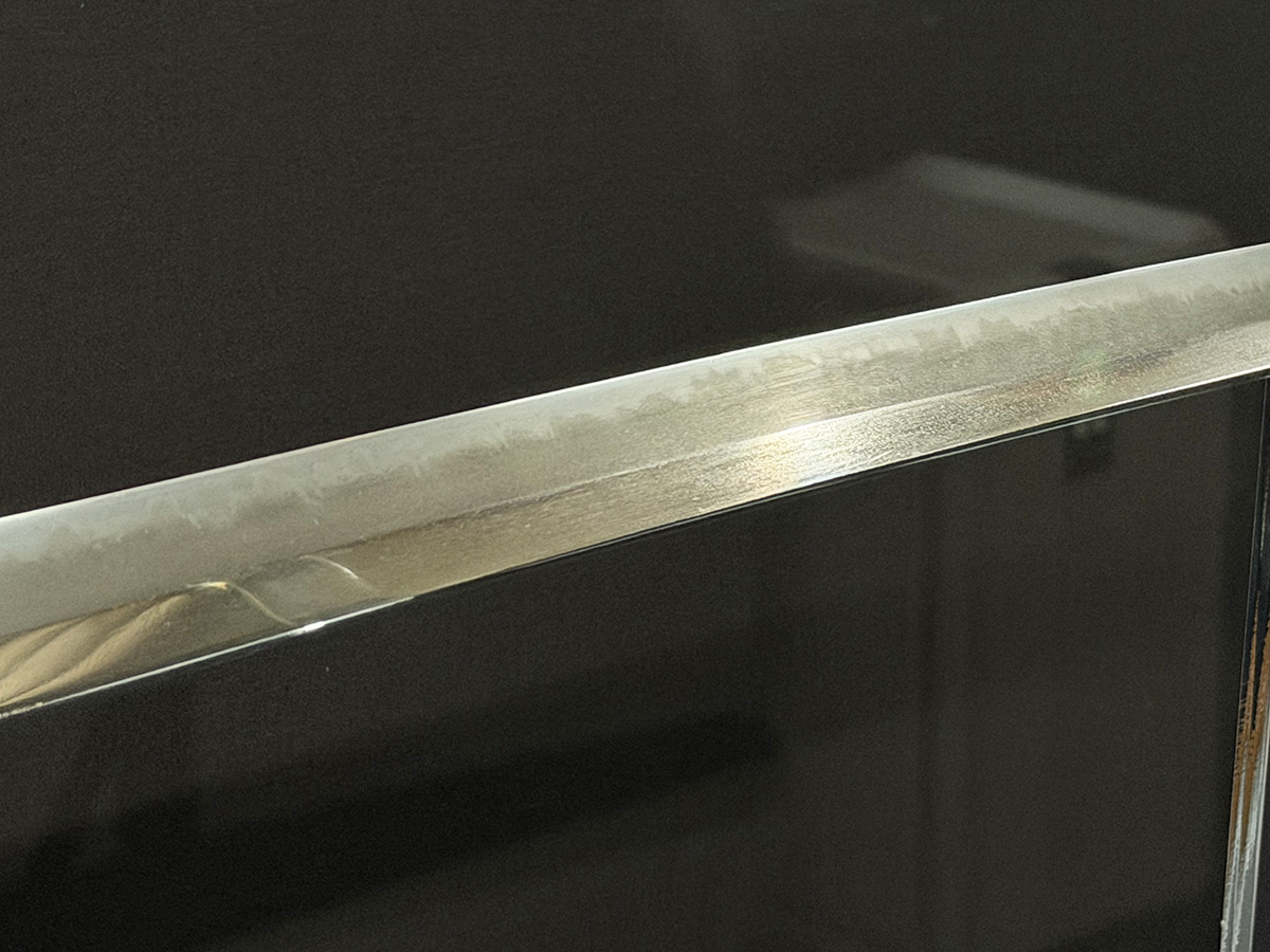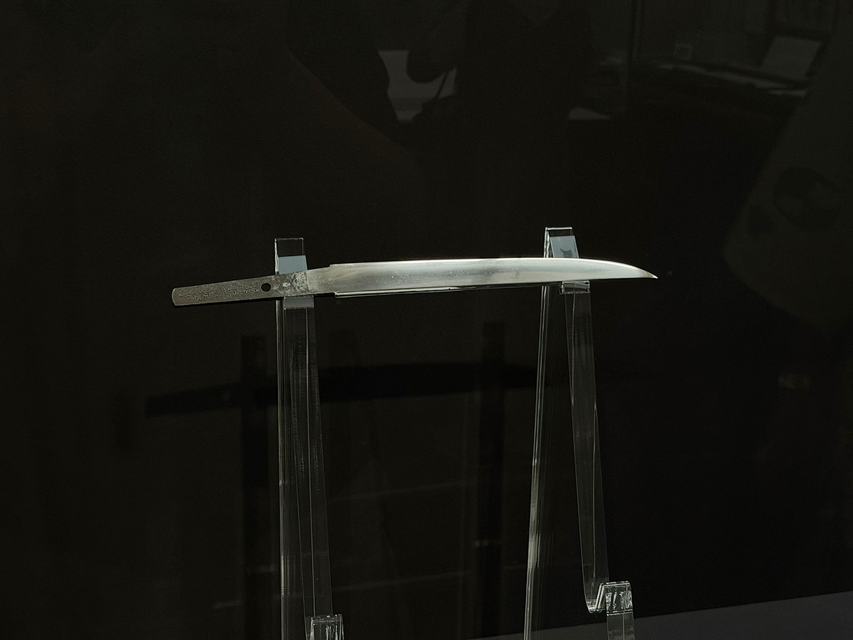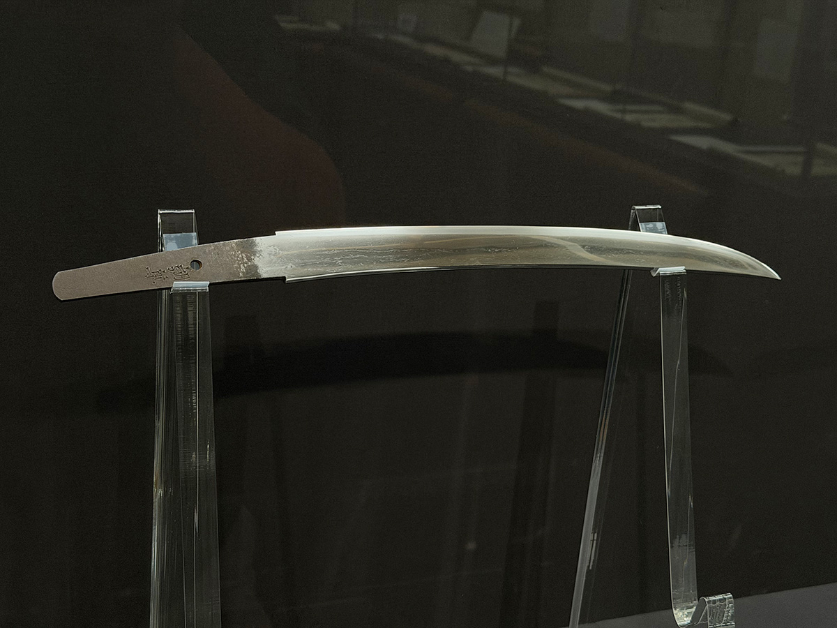 次は脇差 銘 朝尊。こちらは制作年が不明とのことですが、長い年月が経っているにも関わらず、まばゆく光を反射させています。