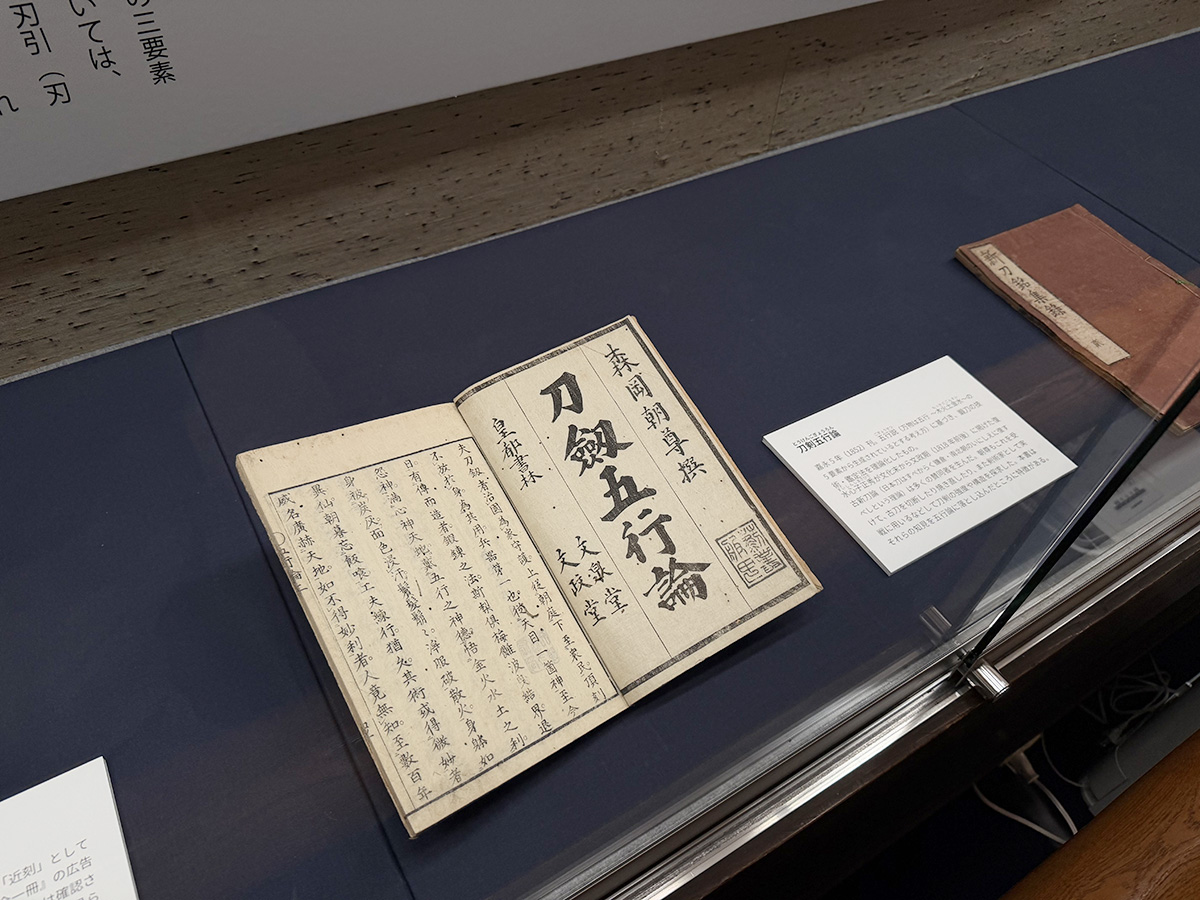 刀工を目指して上京し、江戸・京で活躍した朝尊。実はかなりの刀オタク!だったようで、作刀の材料と技法を理論化した「刀剣五行論」、刀工の系譜と銘を独力で調べて書物にした「新刀銘集録」という著作もあるそうで、刀の製造の技術を次の世代に残すこと、さらには誤りの多い解説書も出回っていたから正しい系譜を知ってもらおうと各地を回りつつ書物にしたためたそうです。