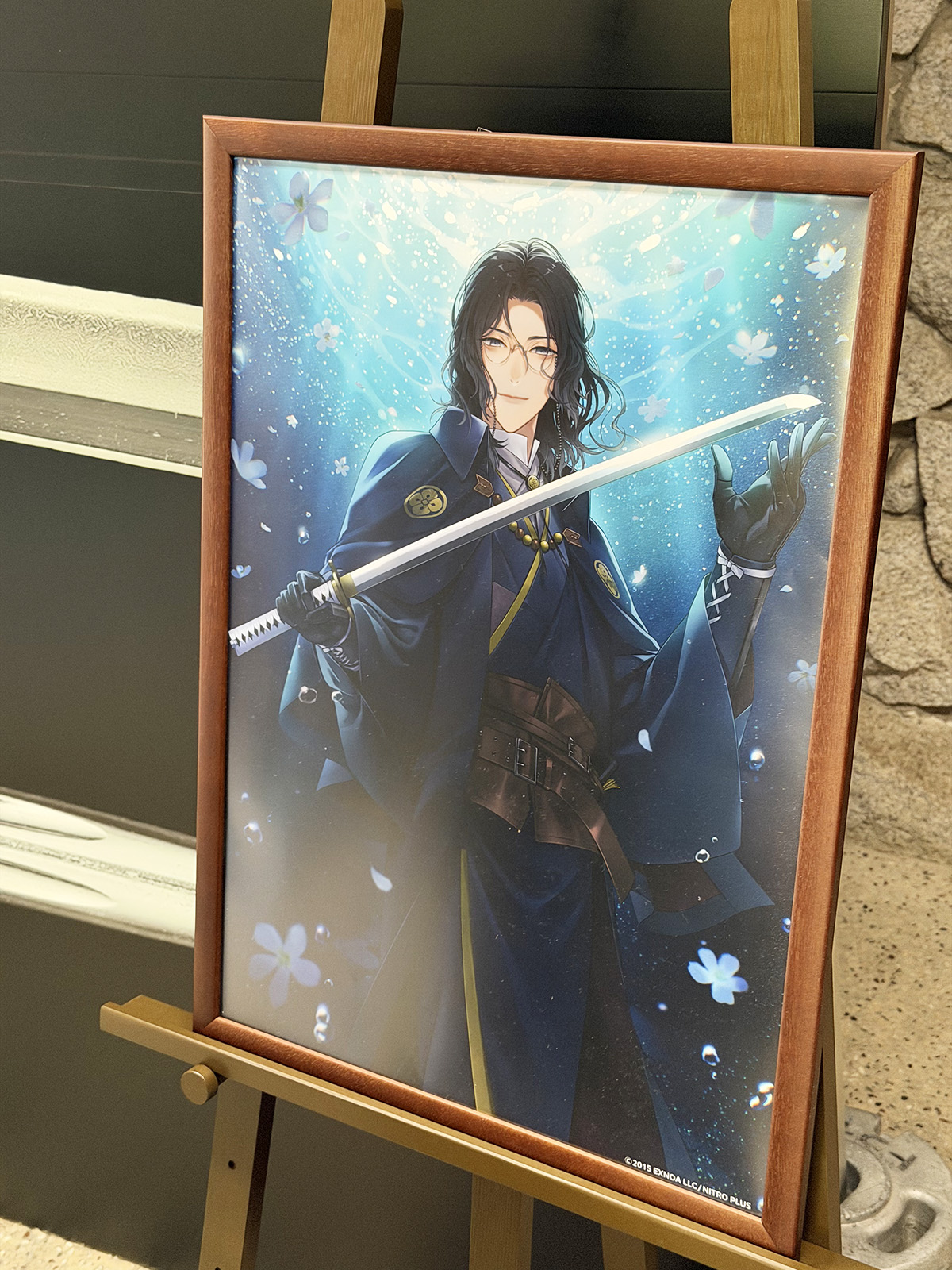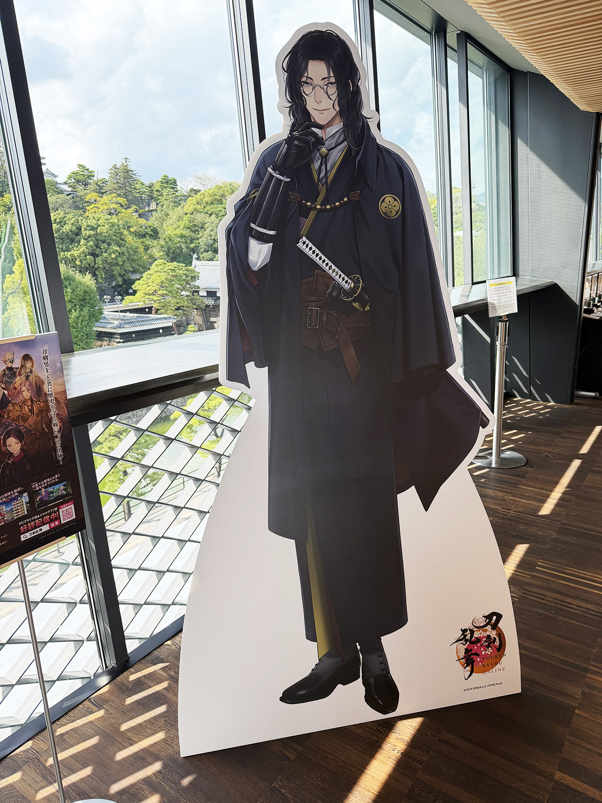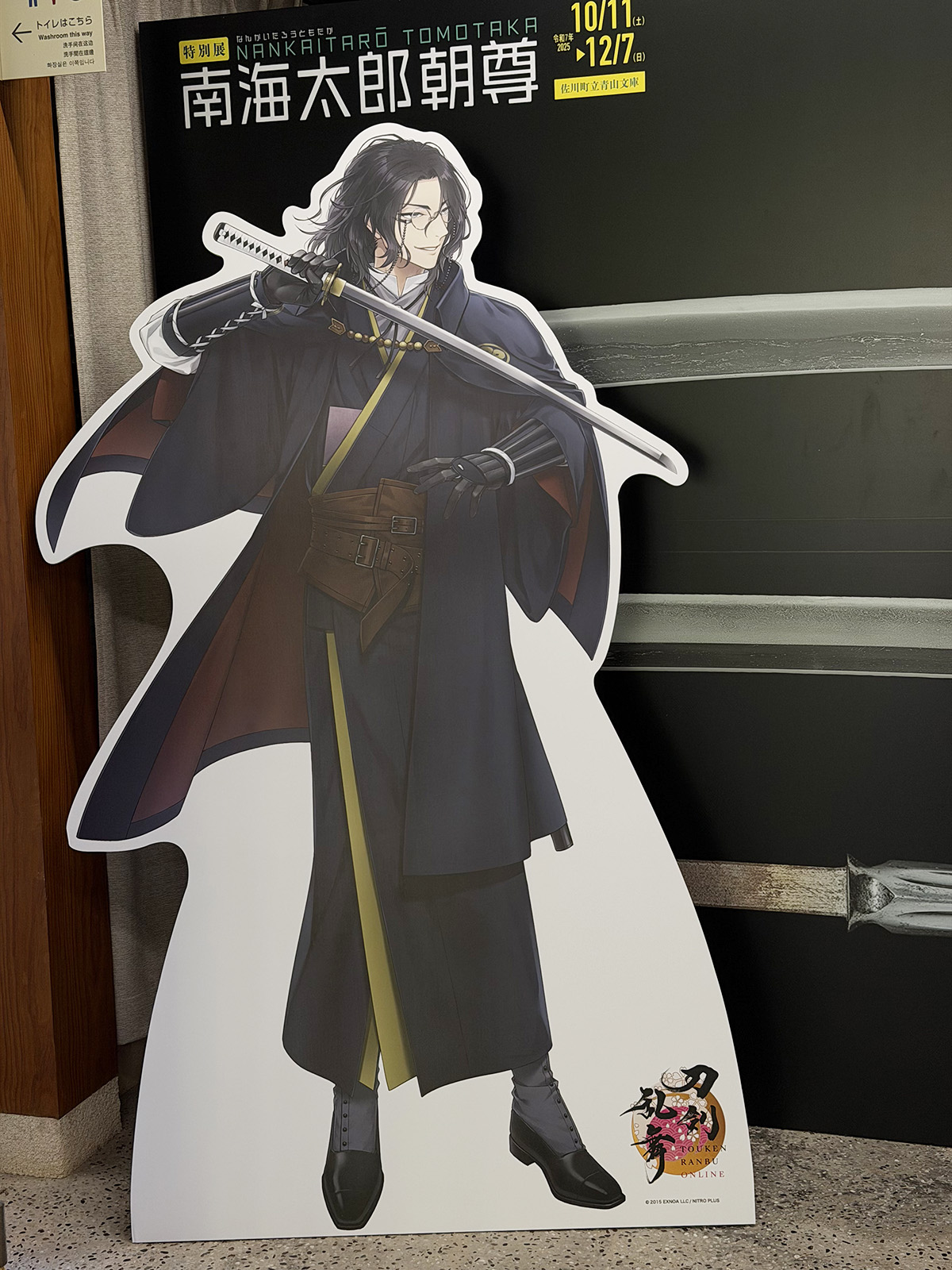 ゲーム内に登場する刀剣男士・南海太郎朝尊の等身大パネルがドドン!と設置されています。