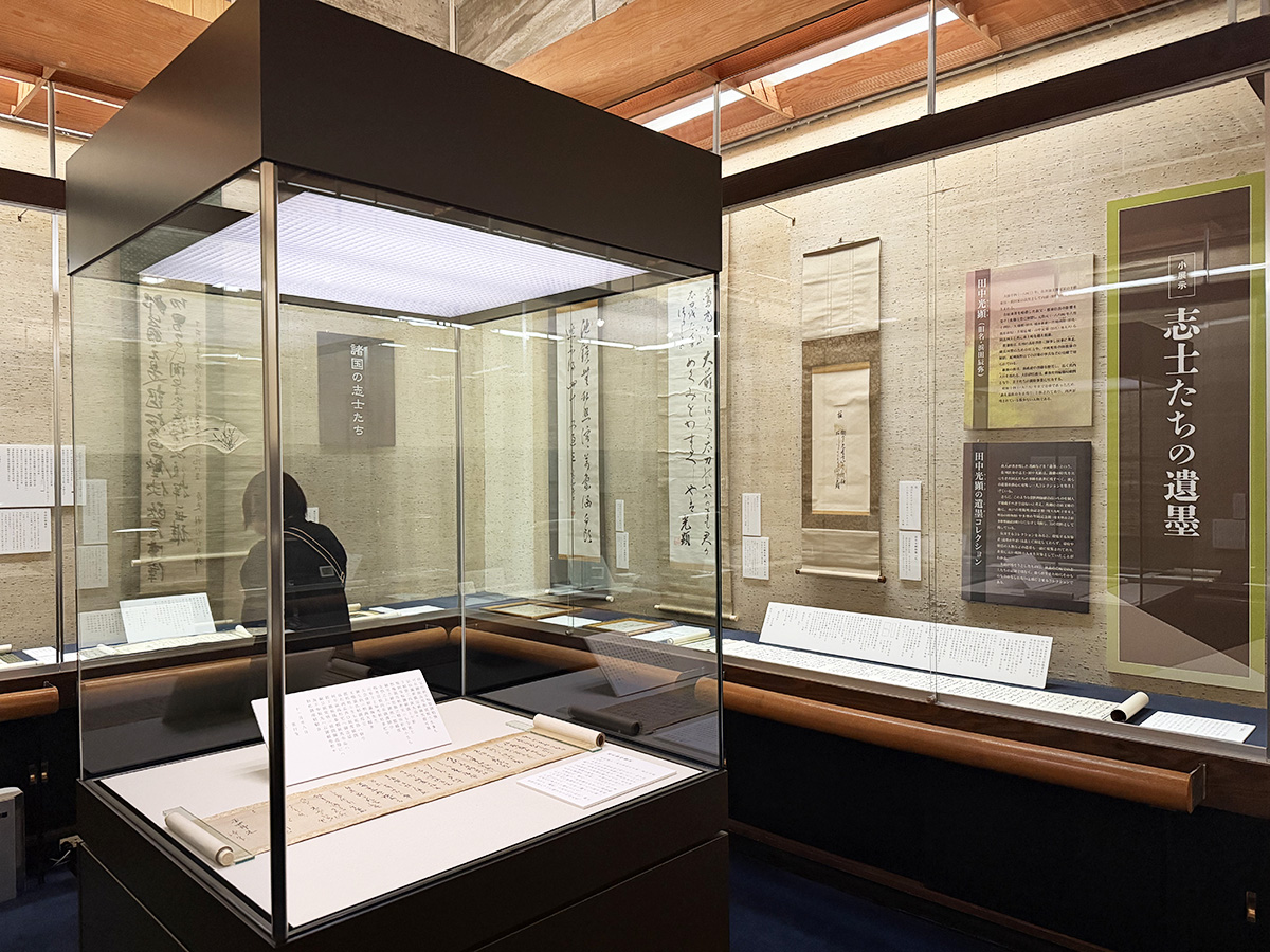 あ、特別展の展示にあわせて、青山文庫の貴重な資料もずらりと展示されています。ボランティアガイドさん曰く「こんなにたくさんの資料が一気に展示されるのは、今までなかったかも?」とのこと。伊藤博文の書や高杉晋作の書簡など、見応えありますよ~。