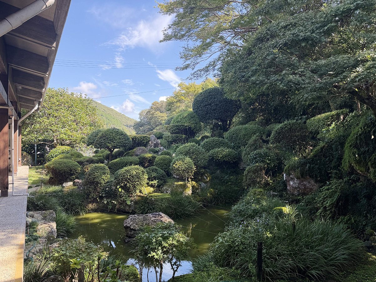 等身大パネルの奥のドアを開けると、青山文庫の裏庭に出られるのですが、この裏庭が見事な日本庭園!よく手入れされていて、とてもすがすがしい気持ちになれるんです。