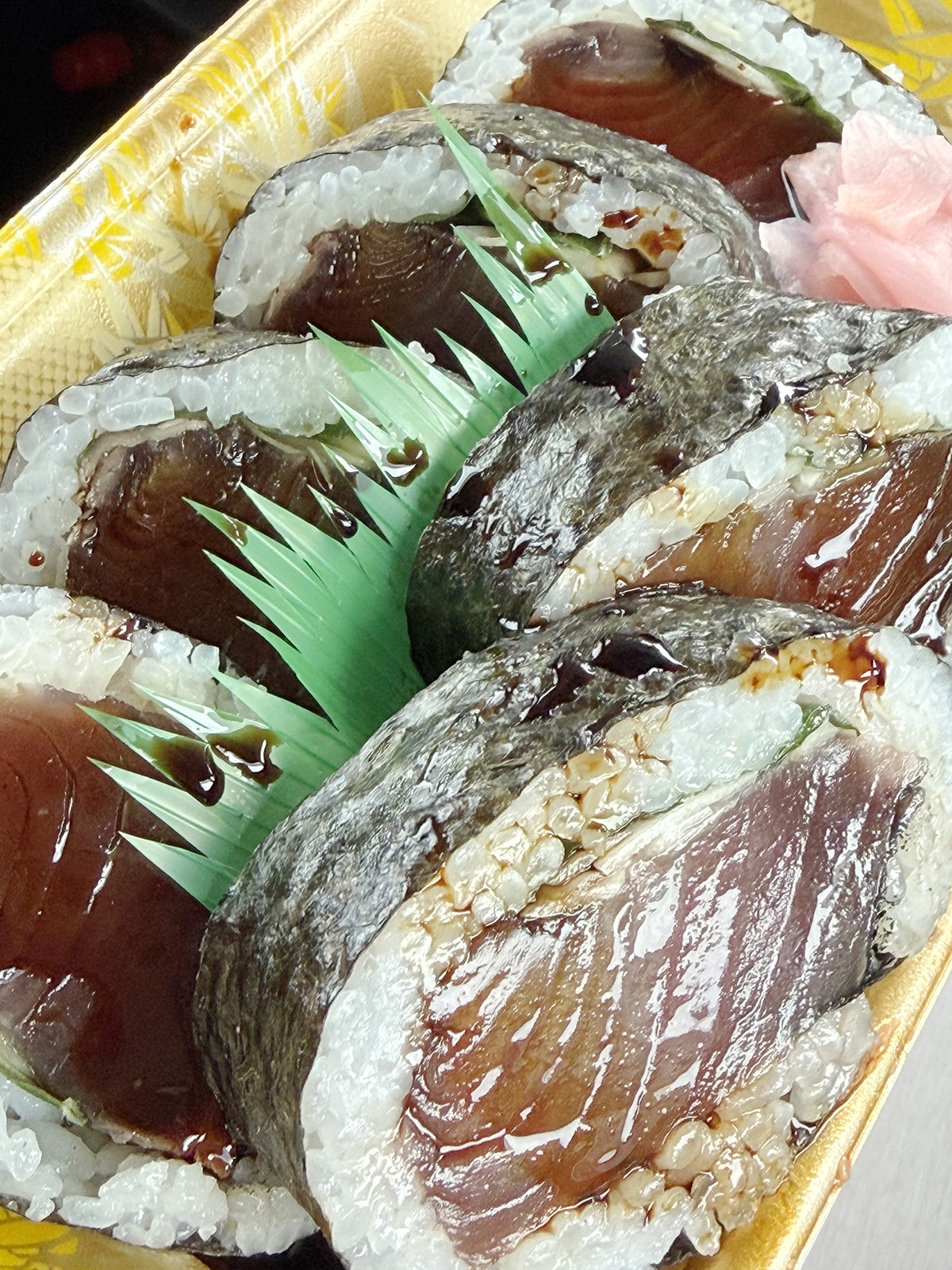 ということでやはり高知名物のかつおのたたきを巻き寿司にした郷土料理「土佐巻き」! いやぁこれがまた美味い!モチモチで弾力のあるカツオにスライスされたにんにくの強い刺激がたまらない旨さ!