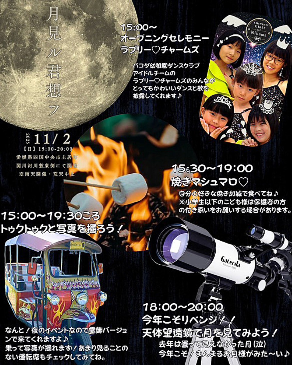 秋が深まる11月、四国中央市の関川ふるさと広場で「第二回 月見ル君想フ」が開催決定♪