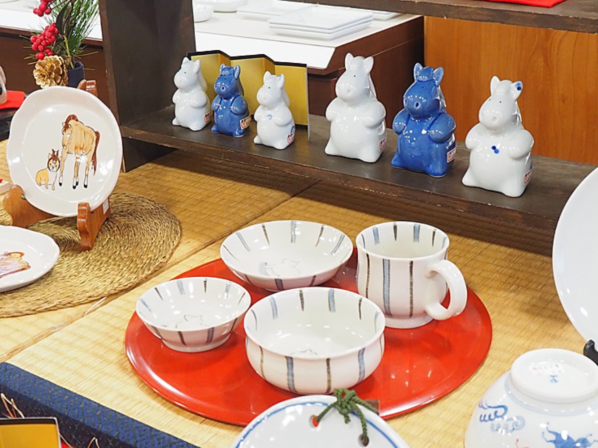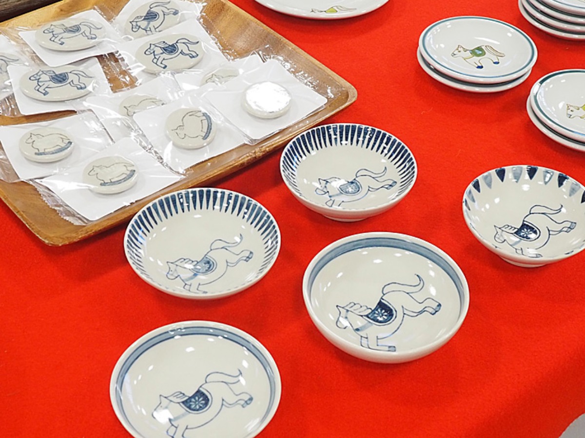 それぞれの窯元が「午」をテーマに、独自の感性や技術を込めた作品を展開しており、丸みを帯びた可愛らしいフォルムやモダンなデザイン、伝統的な素朴さなど多彩なアイテムが揃います。
