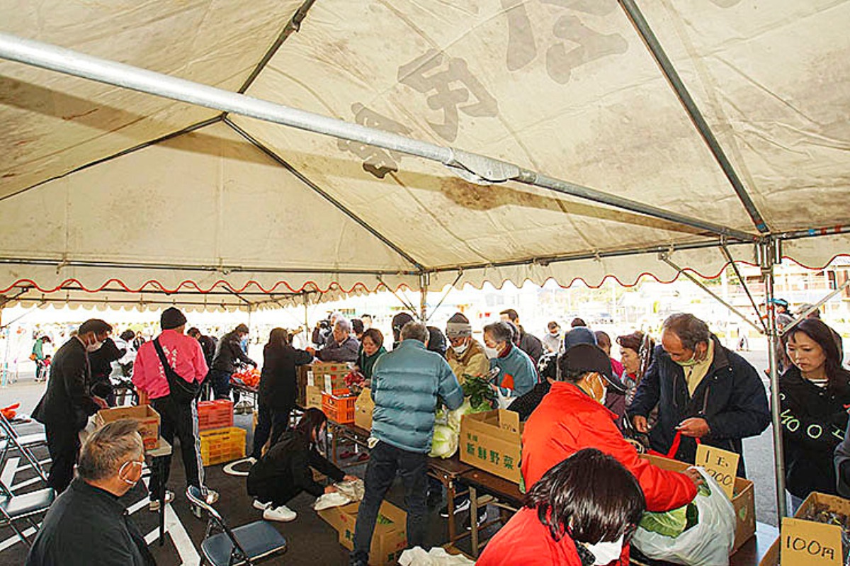 波方産業文化祭の大きな魅力のひとつが、地元の新鮮な食材が勢ぞろいする「青空市」。