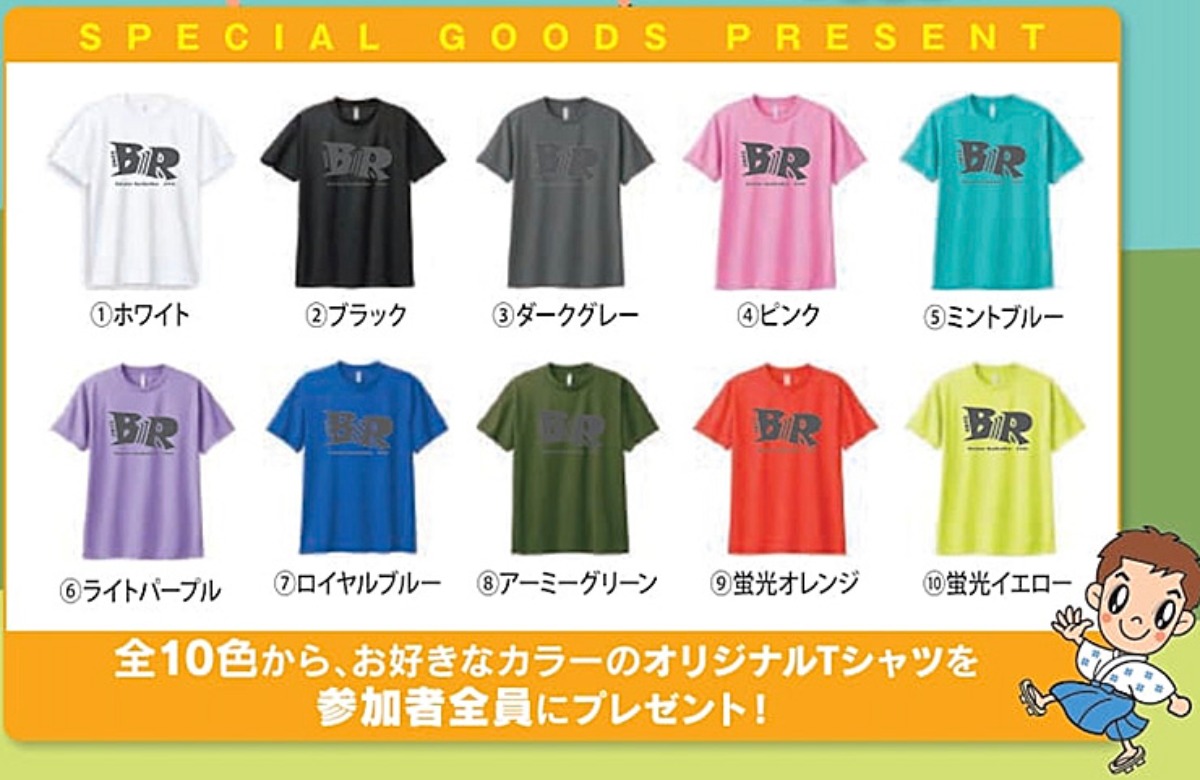 参加賞として用意されているオリジナルTシャツは、10色ものカラーバリエーションから選べるのも嬉しいところ。