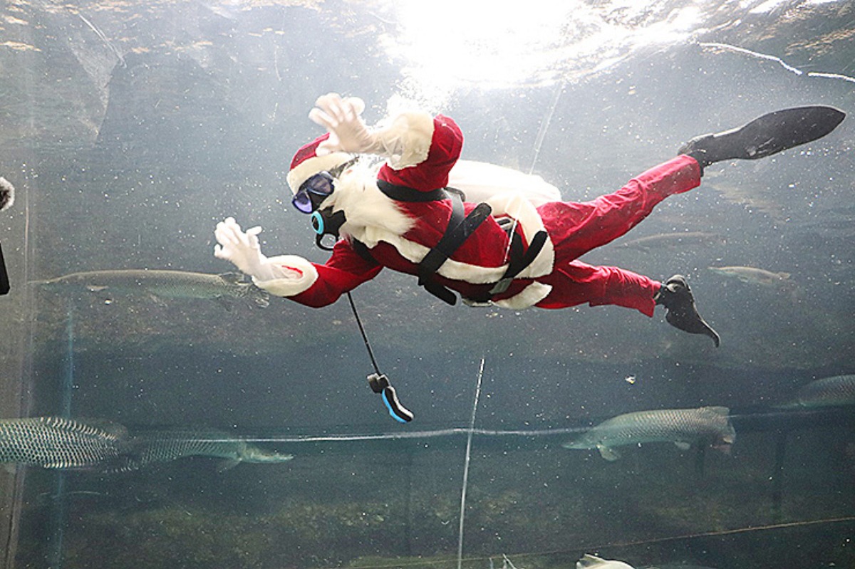 クリスマスシーズンには、熱帯大水槽にサンタクロース姿のダイバーが登場し、子どもたちに楽しい思い出をプレゼント!