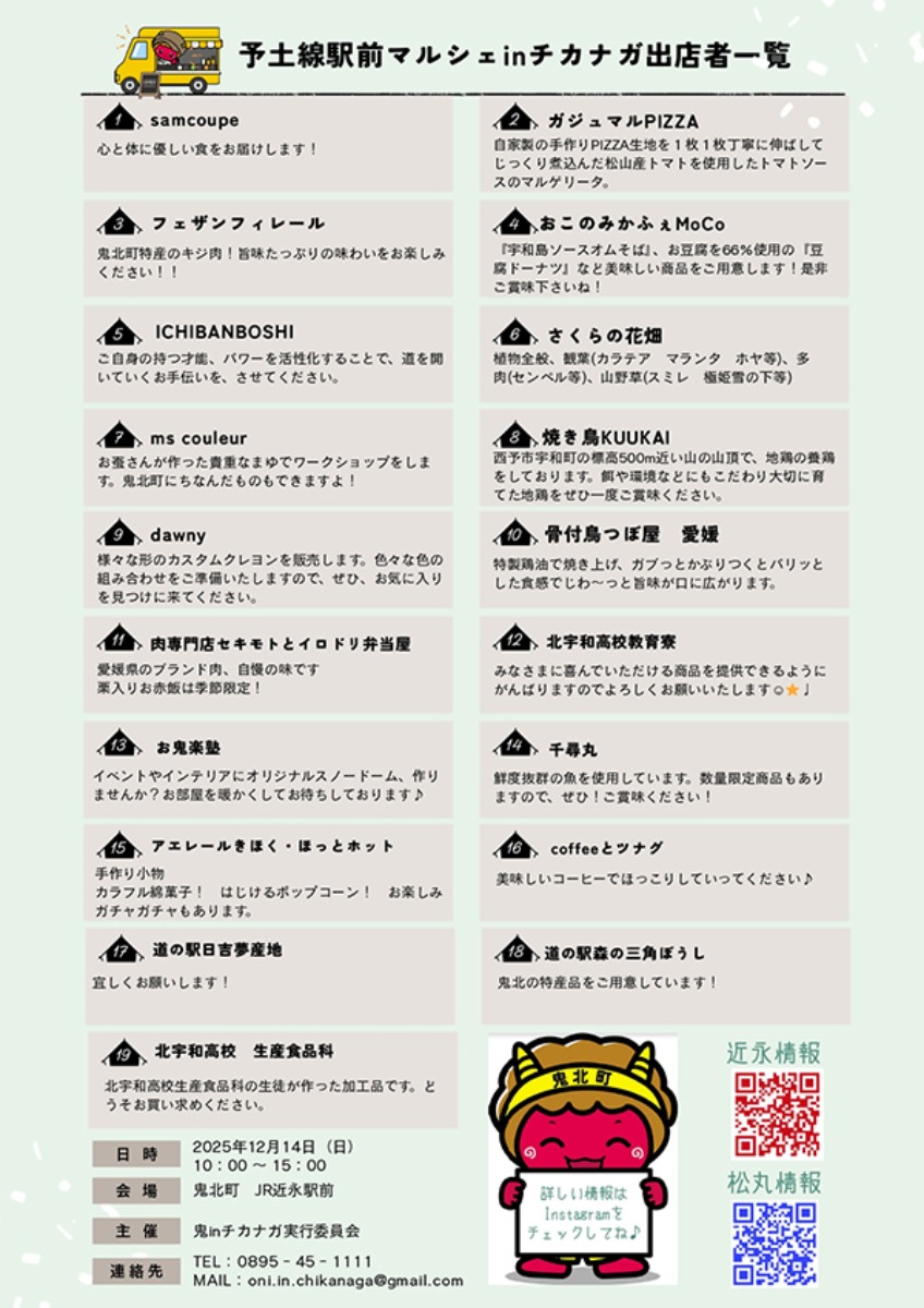 また、「予土線駅前マルシェ in チカナガ」と「JR予土線松丸駅前マルシェ」両方に参加すると、特別なプレゼントがもらえるチャンスも!!