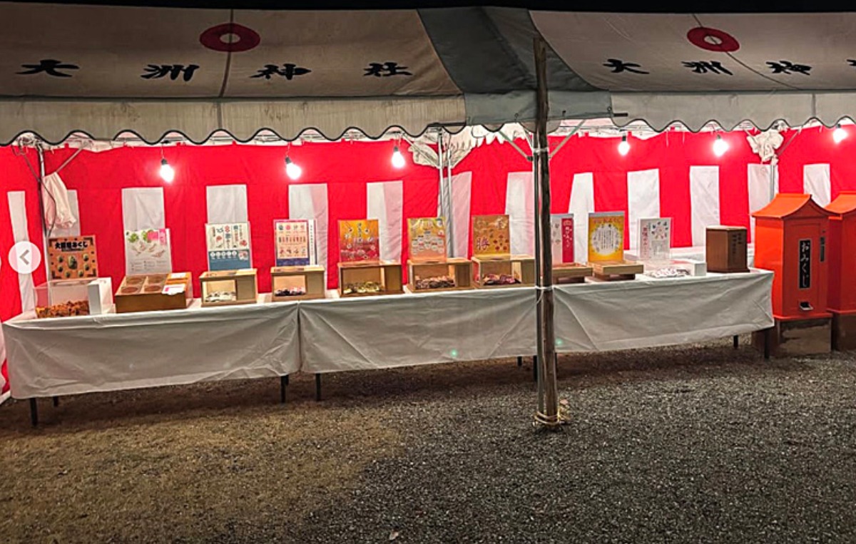 大洲神社の初詣では、毎年恒例の御守りや御札の授与に加え、元旦には特別な「御神饌米(ごしんせんまい)」が約10,000袋配布されます。
