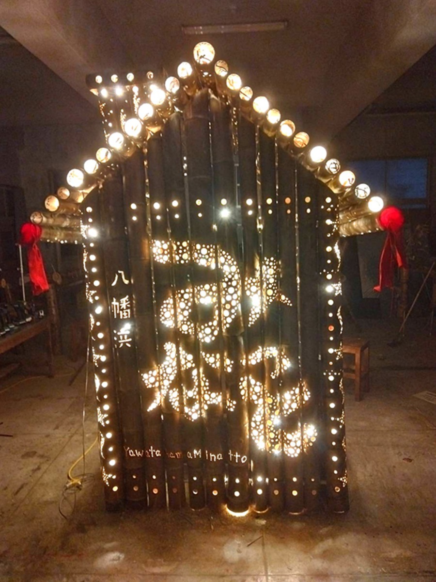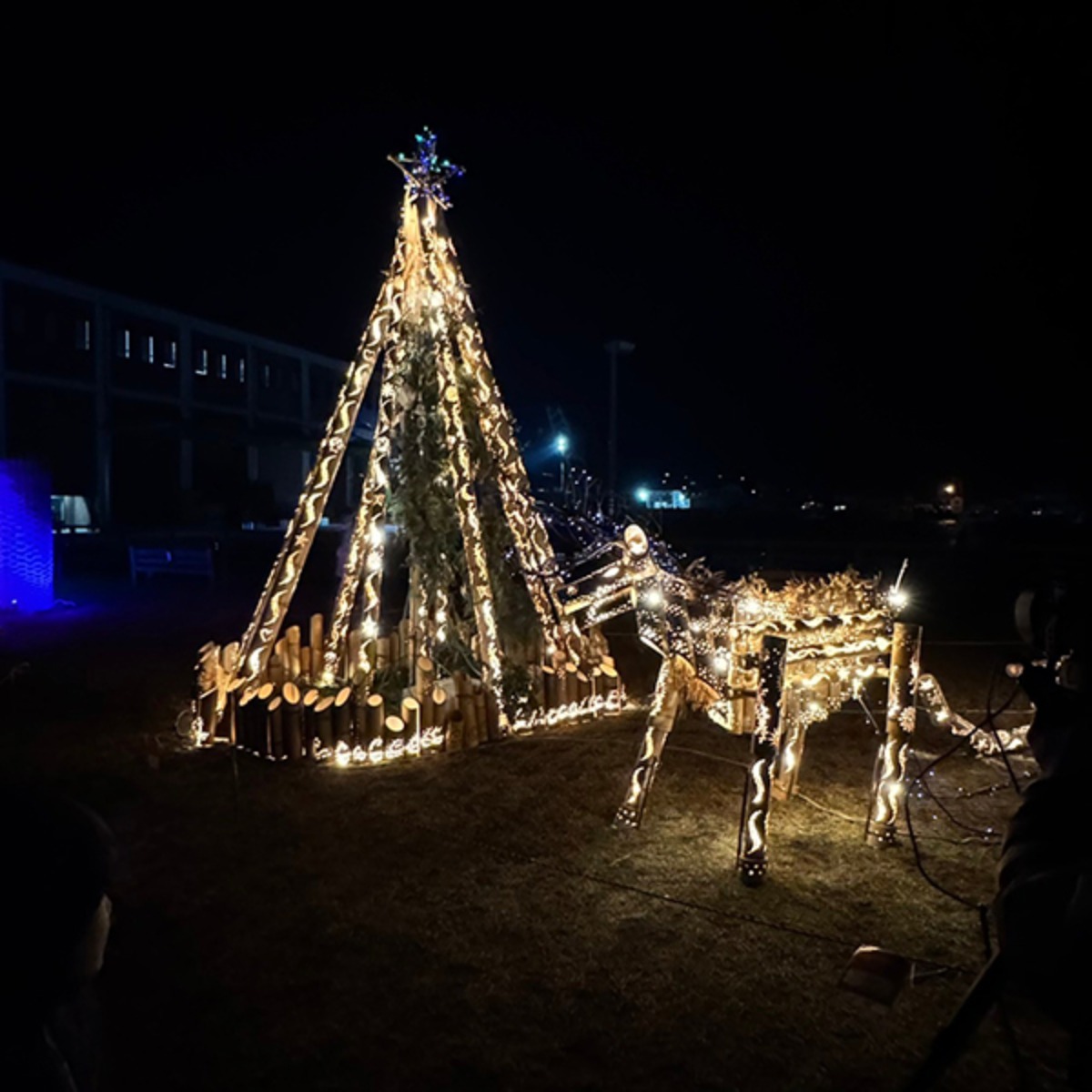 竹のツリーは、八幡浜工業高校の生徒たちと一緒に完成させたもの。