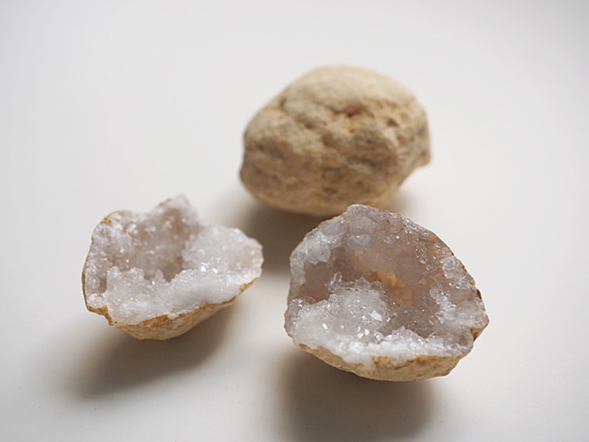 ジオードは晶洞石(しょうどうせき)とも言われ、内部の空洞は水晶やアメジストなどの美しい結晶がびっしり!