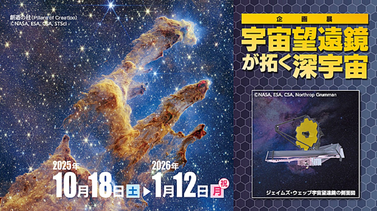 企画展「宇宙望遠鏡が拓く深宇宙」では、ジェイムズ・ウェッブ宇宙望遠鏡が撮影した壮大な宇宙の姿を紹介。