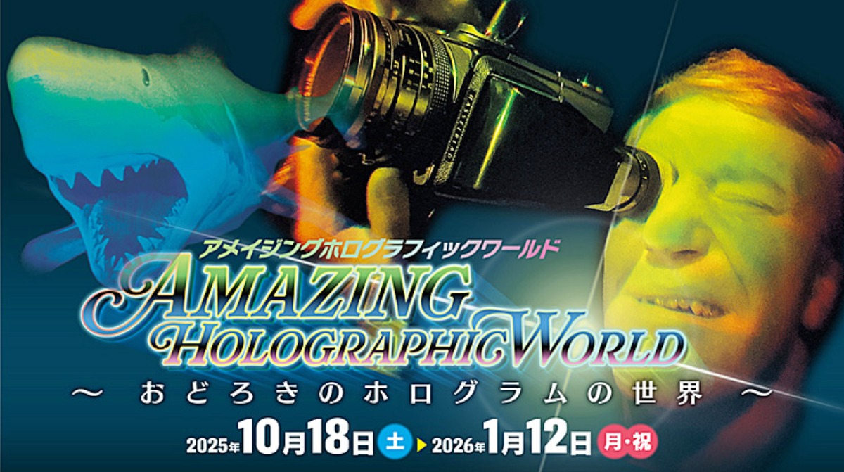 企画展「アメイジングホログラフィックワールド」では、3次元画像を記録再生するホログラフィ技術と、その技術で撮影した立体写真ホログラムを紹介。