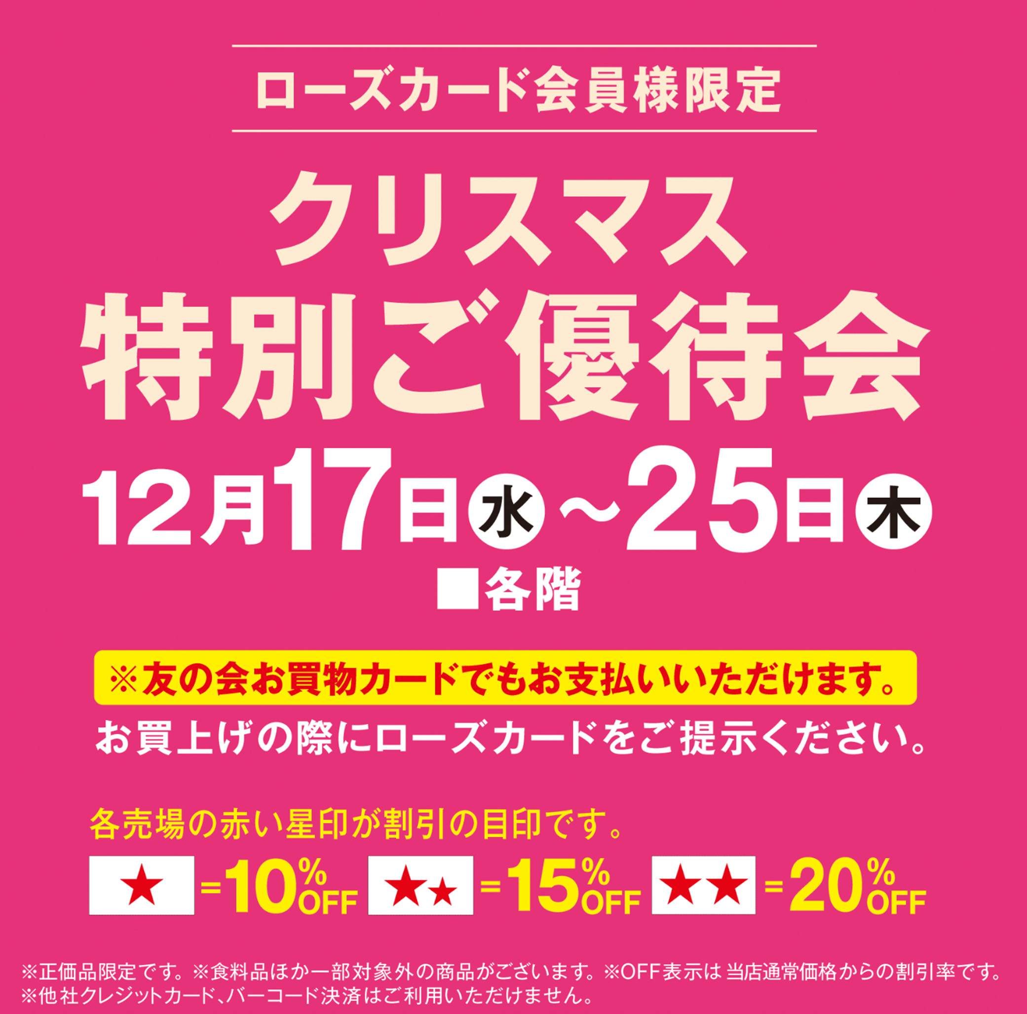 また、この期間中、いよてつ高島屋ではローズカード会員様向けの「クリスマス特別ご優待」が両店で利用可能です。
