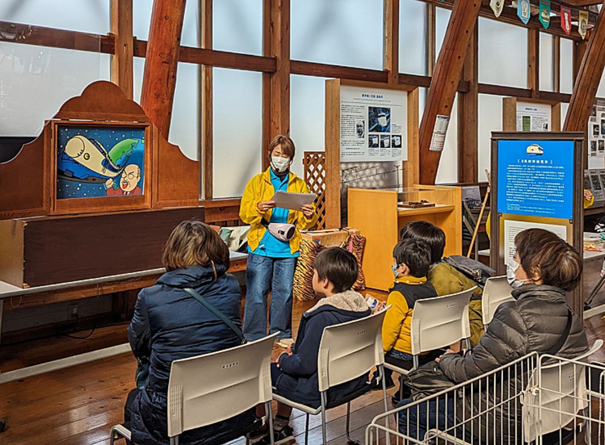 つくしんぼの会による丁寧な読み聞かせで、新幹線誕生までの情熱やエピソードを楽しく学べます。