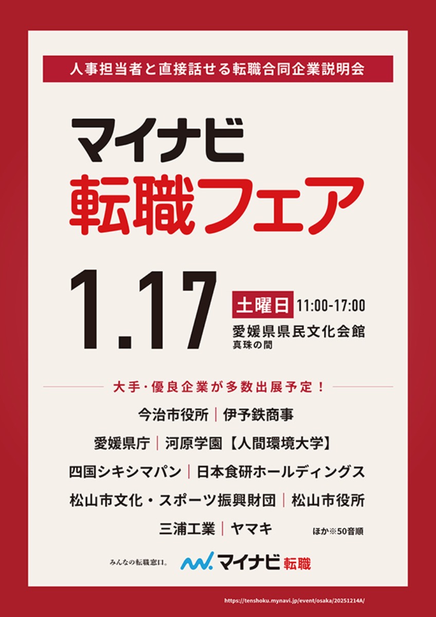 【マイナビ転職フェア松山】人気企業が多数参加する合同企業説明会(愛媛/松山市)