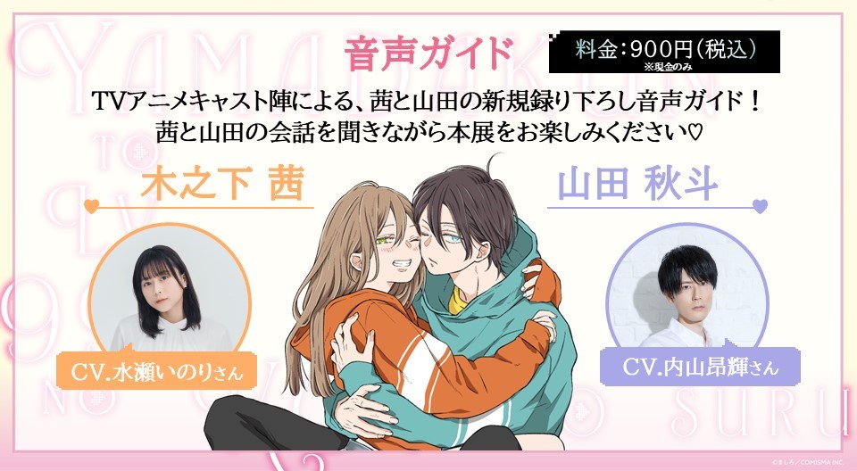 世界観に浸れるフォトスポットや、ここだけのグッズ販売、アニメキャスト茜と山田の録り下ろし音声ガイドなど、ファン必見の内容が盛りだくさん!