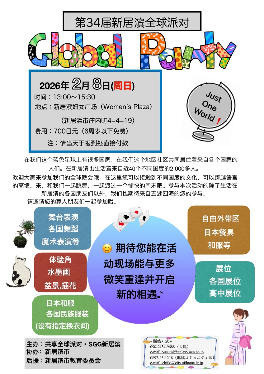 - お問い合わせ: グローバルパーティーを楽しもう会(大亀)/新居浜市地域コミュニティ課