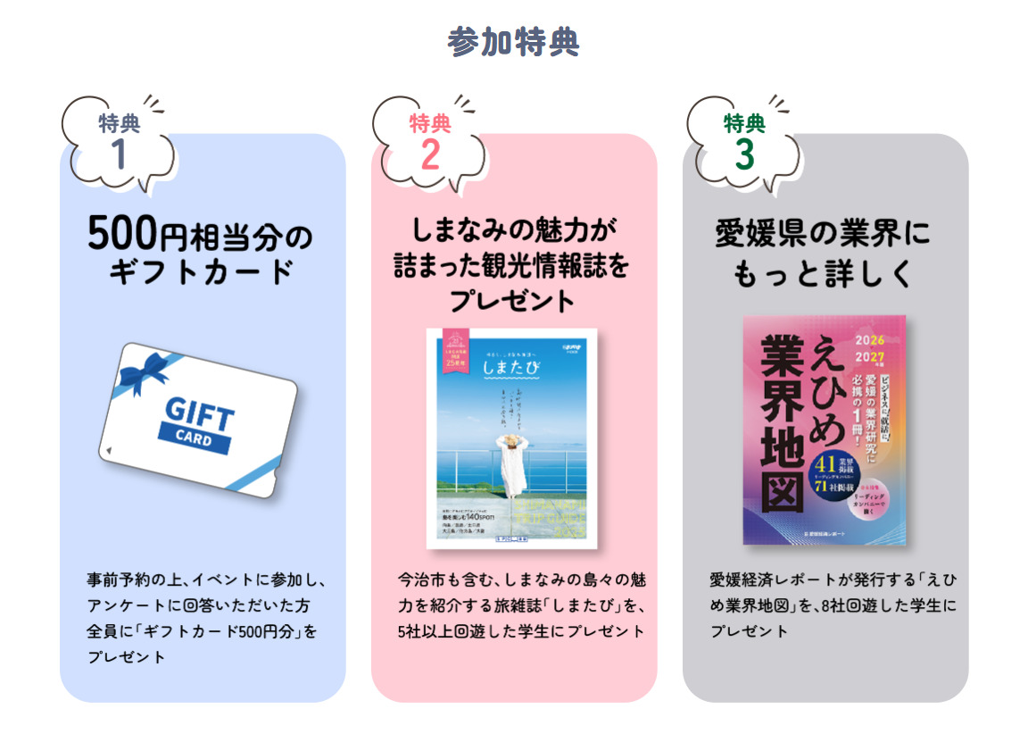 県内で就職・転職の機会を探している方にとって、1日で今治を代表する企業約30社と直接対話できるこのイベントは、将来の選択肢を広げる貴重な機会になるはずです。