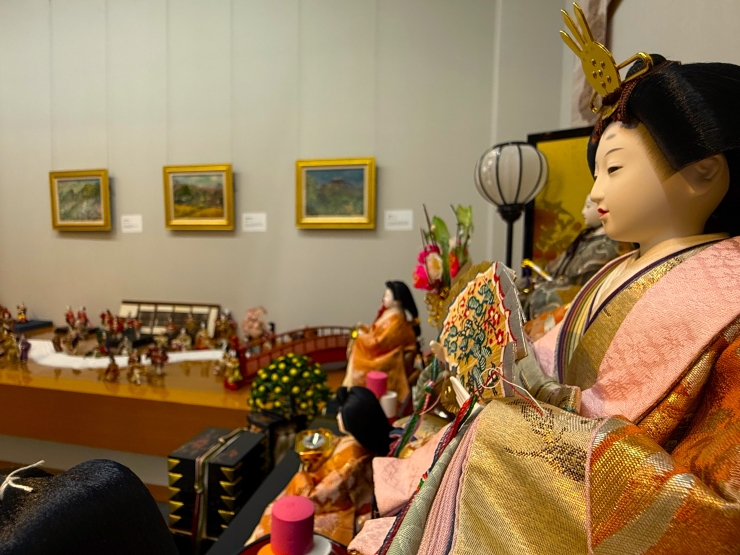 続いて、宇和先哲記念館では、ひな人形とともに西予市出身の画家による絵画が展示されており、美術館のような空間でひな人形が楽しめるのが特徴です。