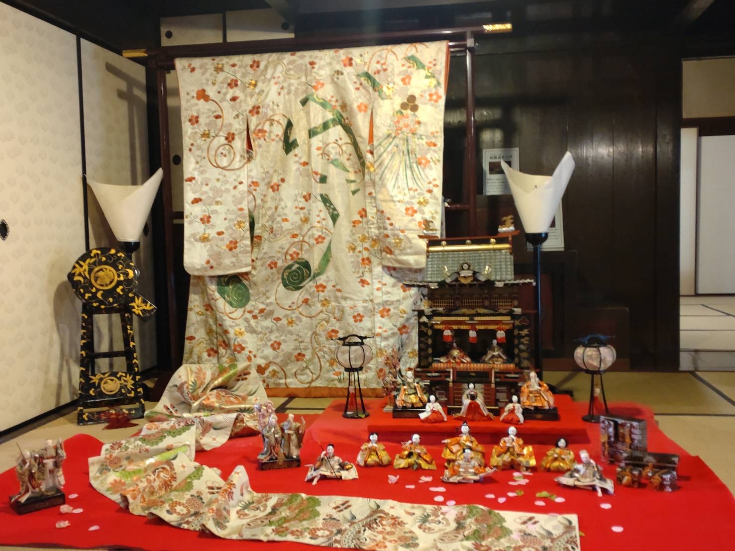 末光家住宅では、1770年建築の歴史ある建物の中で、ひな人形とともに展示される正絹の打掛が見どころです。