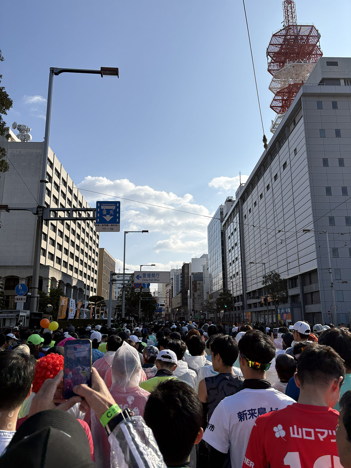 私の勝負服は、毎年恒例の愛媛FCのユニフォームにみきゃんの帽子。今年もこのスタイルで挑みましたが、沿道から「みきゃん頑張れー!」「えひーめえふしー!」と絶え間ない声援をいただき、やはり正解でした。