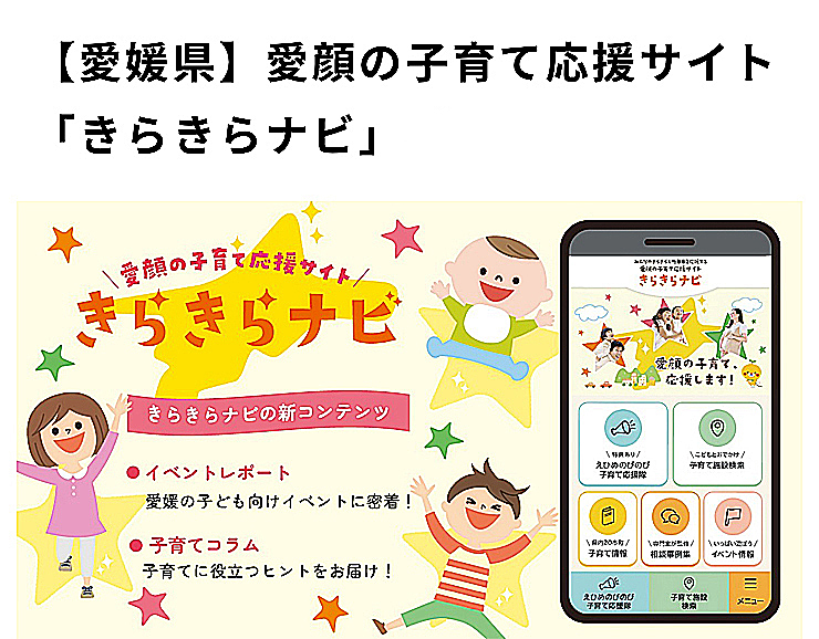 初めて聞くという方には、これを機に知ってほしい!「きらきらナビ」は、愛媛県が子育て世帯へ情報発信をしている子育て応援サイトです♪