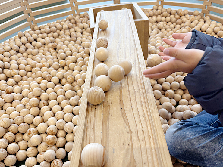 長女は、館内にある木の遊び場コーナーにも夢中になりました。