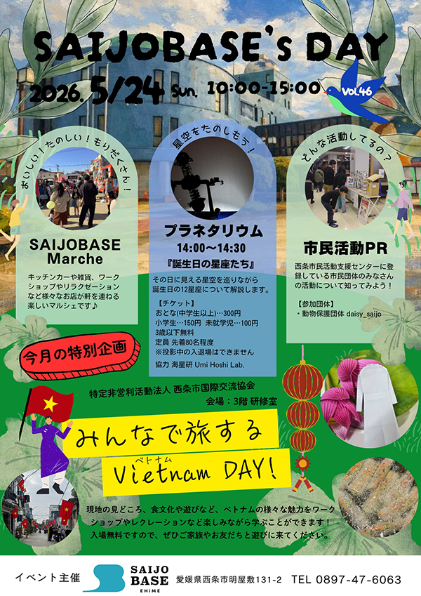西条市のSAIJO BASEで2026年5月24日(日)、「みんなで旅するベトナムDAY」が初めて開催されます!