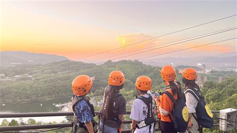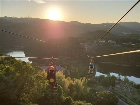 夕空に向かって滑走するジップラインは、お昼の時間にするジップラインと一味違う…!いつもとは違う特別なジップラインをあなたも挑戦してみよう!
