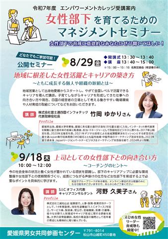 R7年度エンパワーメントカレッジえひめ女性リーダー育成塾/女性部下を育てるためのマネジメントセミナー