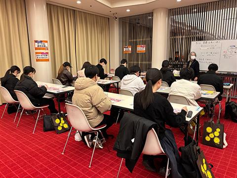 愛媛県内の企業50社が集結する年末の合同会社説明会。愛媛県庁・松山市役所も参加! 「企業ブースツアー」「オリジナル企業情報冊子」「適性診断」「若手社員との座談会」「相談コーナー」といった5つの“見つかる”コンテンツで、見て・話して・感じて、自分だけの“就活の軸”を見つけよう。