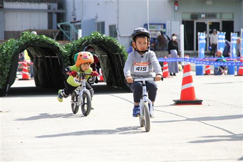 ランニングバイクでしまなみ海道サイクリングをイメージした楽しいコースを走ろう! 2歳から5歳(6歳未就学児もOK)のお子さまが対象。 お気軽に申込みしよう。