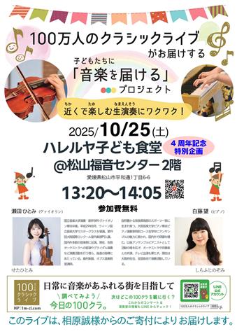 開催時間 | 11:30~14:15 第1部:子ども食堂の食事、第2部:子供たちのための楽しいクラシック・コンサート(入場無料) |