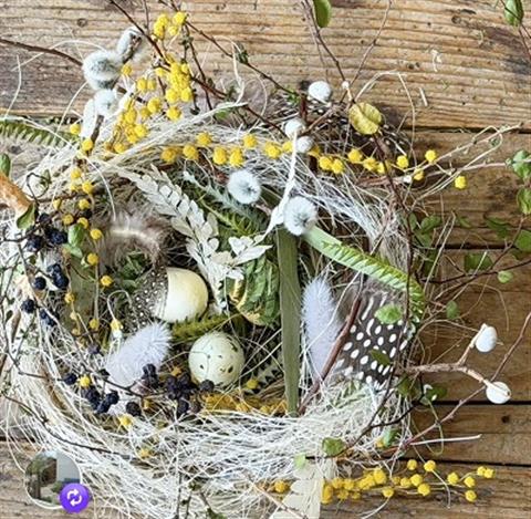 4月4日幸せの日にバードネスト(鳥の巣)をドライフラワーで作ってみよう。講師はHana三昧オーナ-横内ちはるさん。11時、14時(2部制)3,500円、定員各8名、プチマルシェでは花や苗もの、お洋服、器他。花と触れ合うイベント。