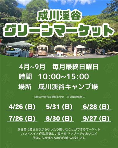 成川渓谷グリーンマーケット運営係 山下 greenmarketkihoku@gmail.com |