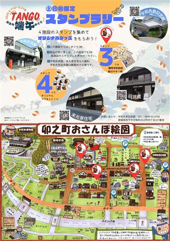 西予市宇和町卯之町にある古い町並みの4つの施設を舞台に全長8メートルを鯉のぼりをはじめ、豊臣秀吉ら武将の勇ましい姿を描いた幟旗、精巧な武者人形や兜が勢ぞろい。土・日・祝日限定の景品付きスタンプラリーも楽しめる。
