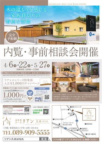家族想ホールリアン久米はなれ 089-909-5555 |