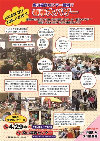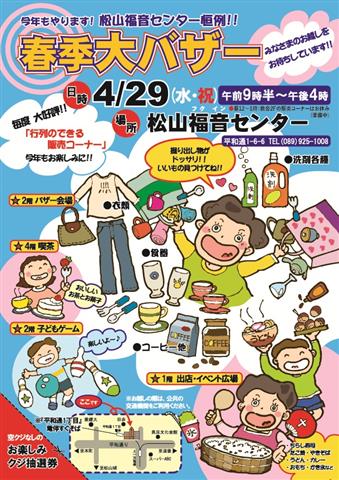 お買い得品、掘出し物がいっぱいのバザーに、名物の福音寿司など美味しい出店もいっぱい!家族で楽しめるゲームや、おもちつきのバザー。毎年恒例、手作りのアットホームな雰囲気で人気の春の名物バザーに、行楽気分で参加してみよう。